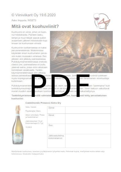 Pari esimerkkiä Viiniaiheista viihdykettä ryhmille -teeman runkomateriaalista,